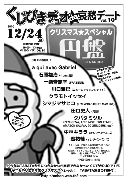 ♪ 今年はTABATA多忙につきなかなか実現できなかったくじ引きDUOですが、今年もやります年末クリスマススペシャル! エントリー増員プラスTABATA渾身の料理付!