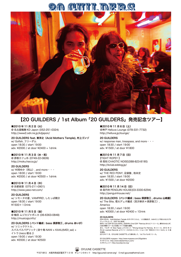 ♪ エモーショナル・フォーク・ロック・デュオ、20ギルダーズの1stCDが、遂にギューンカセットより発売!